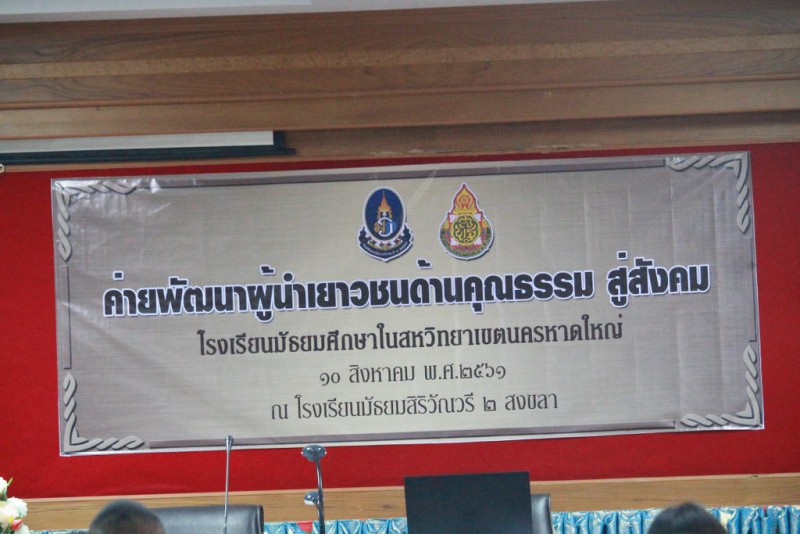 วันที่ 10 สิงหาคม 2561 อบรมเชิงปฏิบัติการค่ายผู้นำเยาวชนคุณธรรมสู่สังคมสหวิทยาเขตนครหาดใหญ่ ณ ห้องศูนย์เทคโนโลยี โรงเรียนมัธยมสิริวัณวรี ๒ สงขลา