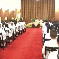 โอกาสนี้ ประทานพระวโรกาสให้ผู้แทนนักเรียนกลุ่มโรงเรียนในพระราชูปถัมภ์ฯ เฝ้า เปิดกรวยธูปเทียนแพ และกล่าวนำนักเรียนที่สำเร็จการศึกษาชั้นประถมศึกษาปีที่ 6 มัธยมศึกษาปีที่ 3 และมัธยมศึกษาปีที่ 6 กราบทูลลา เนื่องในโอกาสสำเร็จ
