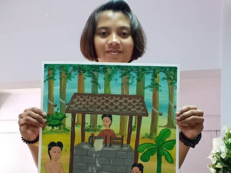 7. การแข่งขันเขียนภาพประเพณีไทย ม.1-ม.3 ได้รับรางวัล เหรียญทอง ครูผู้ฝึกซ้อม นางปิตุพร ธรรมโร