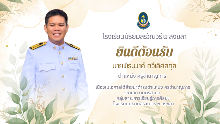 ยินดีต้อนรับเข้าสู่เว็บไซต์โรงเรียนมัธยมสิริวัณวรี ๒ สงขลา "รักษ์ ศักดิ์ศรี มีคุณธรรม นำวิชาการ สืบสานงานพระราชดำริ"