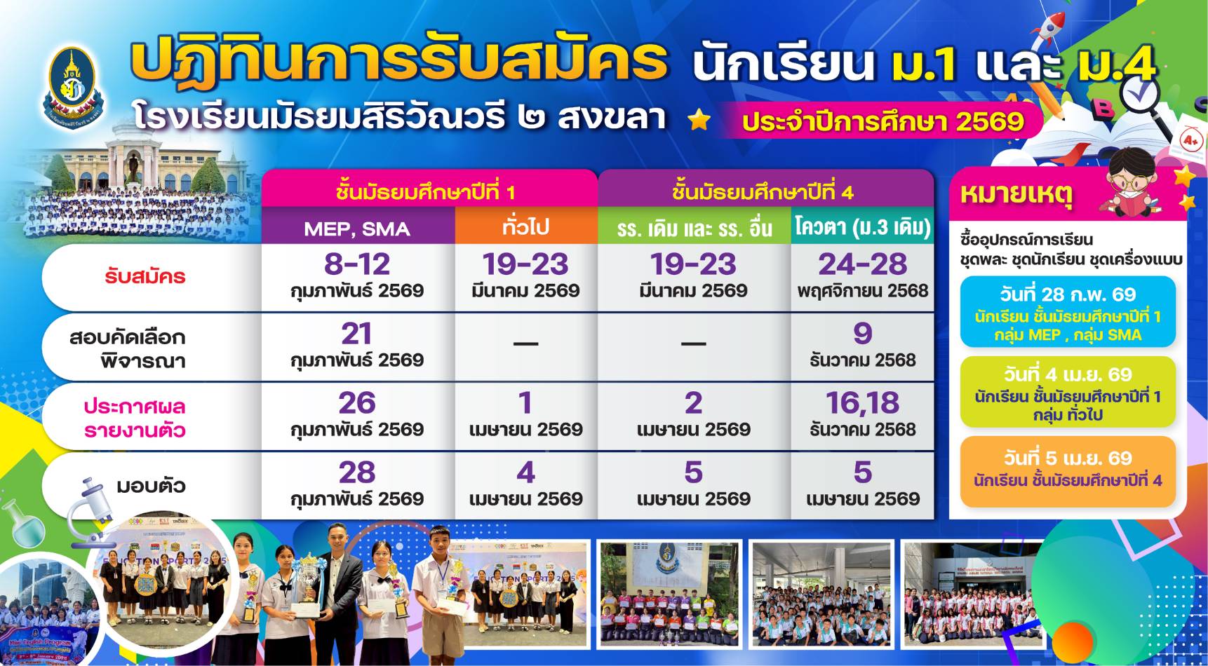 ปฎิทินการรับสมัครนักเรียน ปีการศึกษา 2569